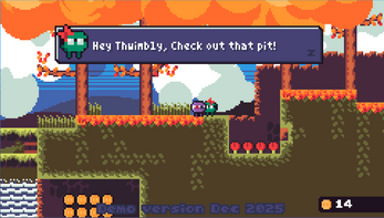 Thwimbly is a short and cute platformer made in TIC-80. Designed to feel fast and fluid, Thwimbly is built with both casual play and speedrunning in mind. Currently, this version incorporates the first four levels in the game, comprising world 1.