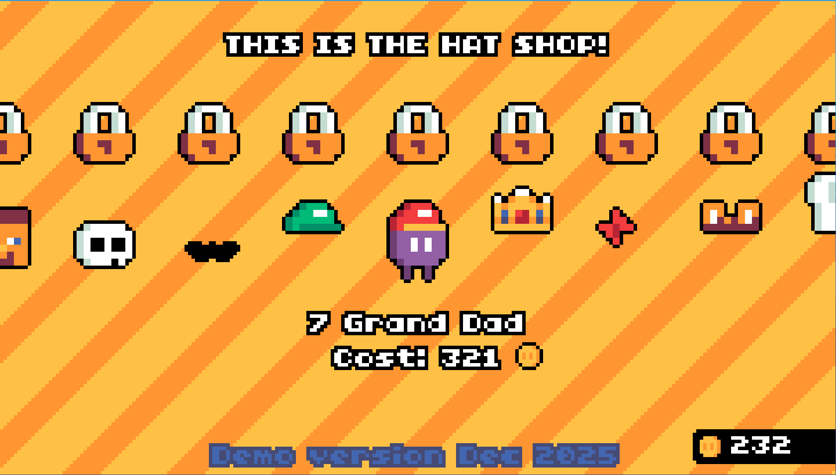 - Collectible hats purchasable with collectible coins!